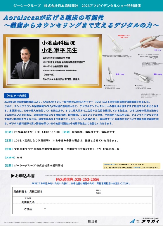 ■ アマガイデンタルショー特別講演 Aoralscanが広げる臨床の可能性 ~義歯からカウンセリングまで支えるデジタルの力~