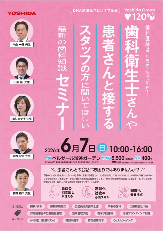歯科衛生士さんや患者さんと接するスタッフの方に聞いて欲しい 最新の歯科知識セミナー